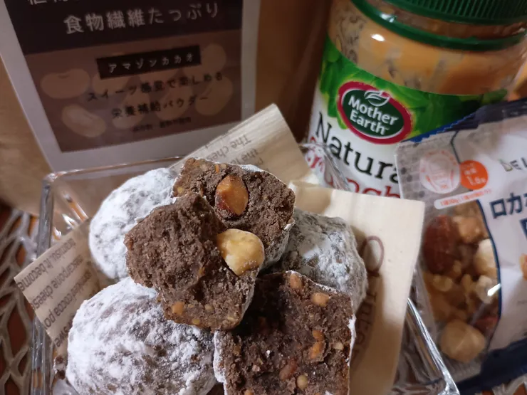 アーモンドパウダーをearthミルクさんのアマゾンカカオにしたり、太白ごま油を機能性オイルにしてみたりしました。(太白ごま油ならもう少ししっとりするかな🤔)ピーナッツバターは100グラム使用と、他にも砂糖など入ってますがとりあえず簡単に娘と作りました!