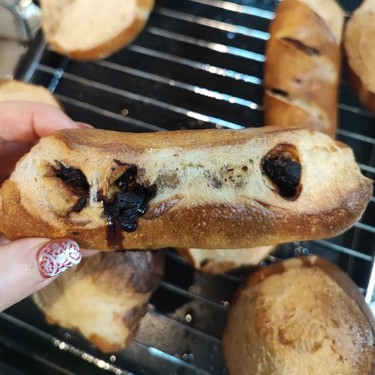 ドライフィグの方は閉じ目を上にしてそこから開くようにしてみましたが、今回生地の水分量を間違って増やしてしまったのもあり、微妙な仕上がりですね💦