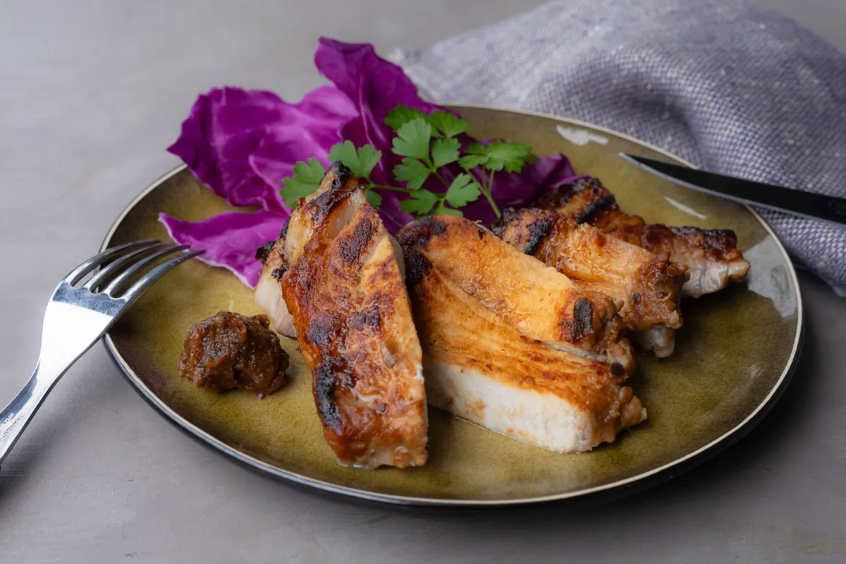 ◉豚肉のプルーン味噌ヨーグルト漬け焼き