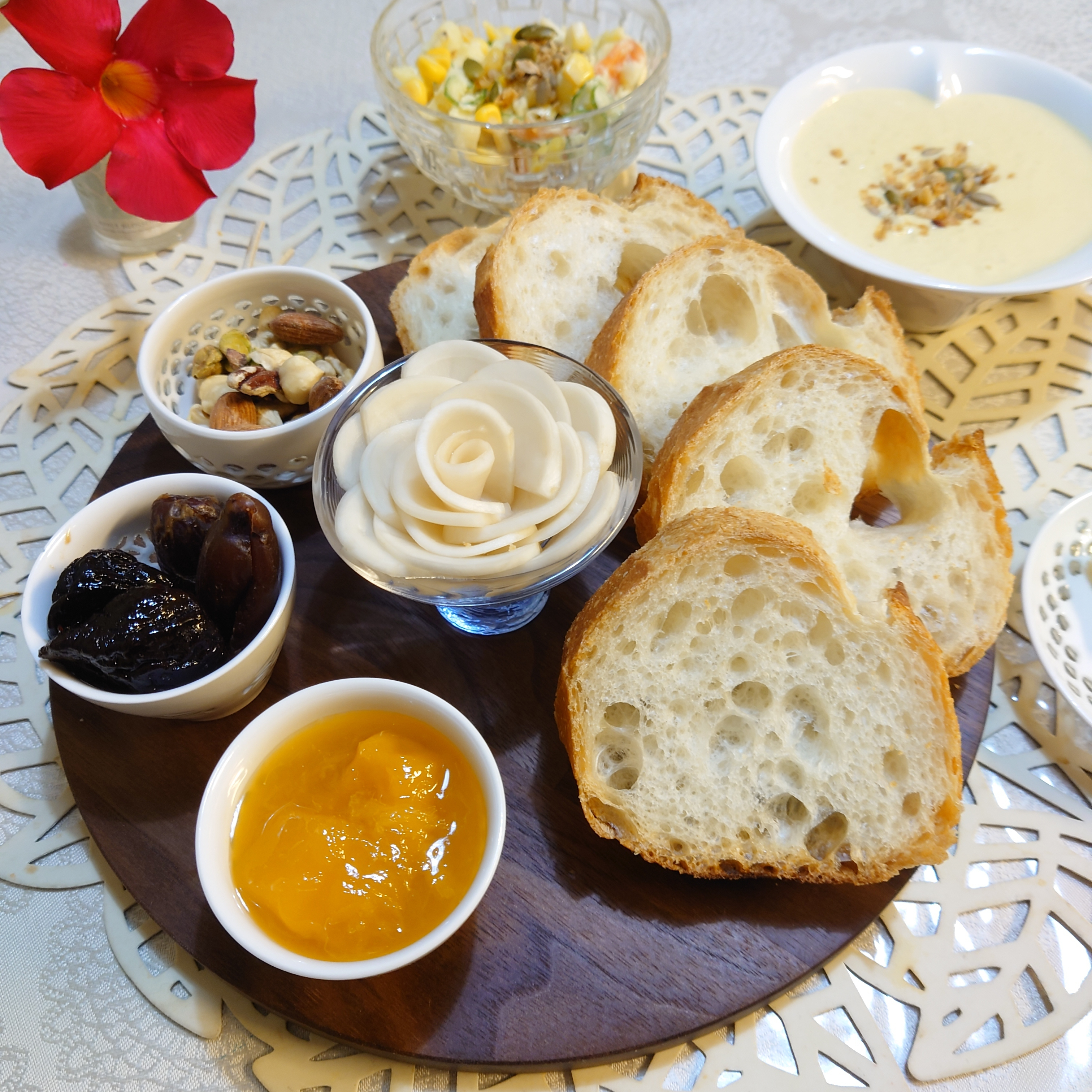 かぶの甘酢漬け、豆乳入りコーンポタージュ、りんご入りポテトサラダを作りました💓