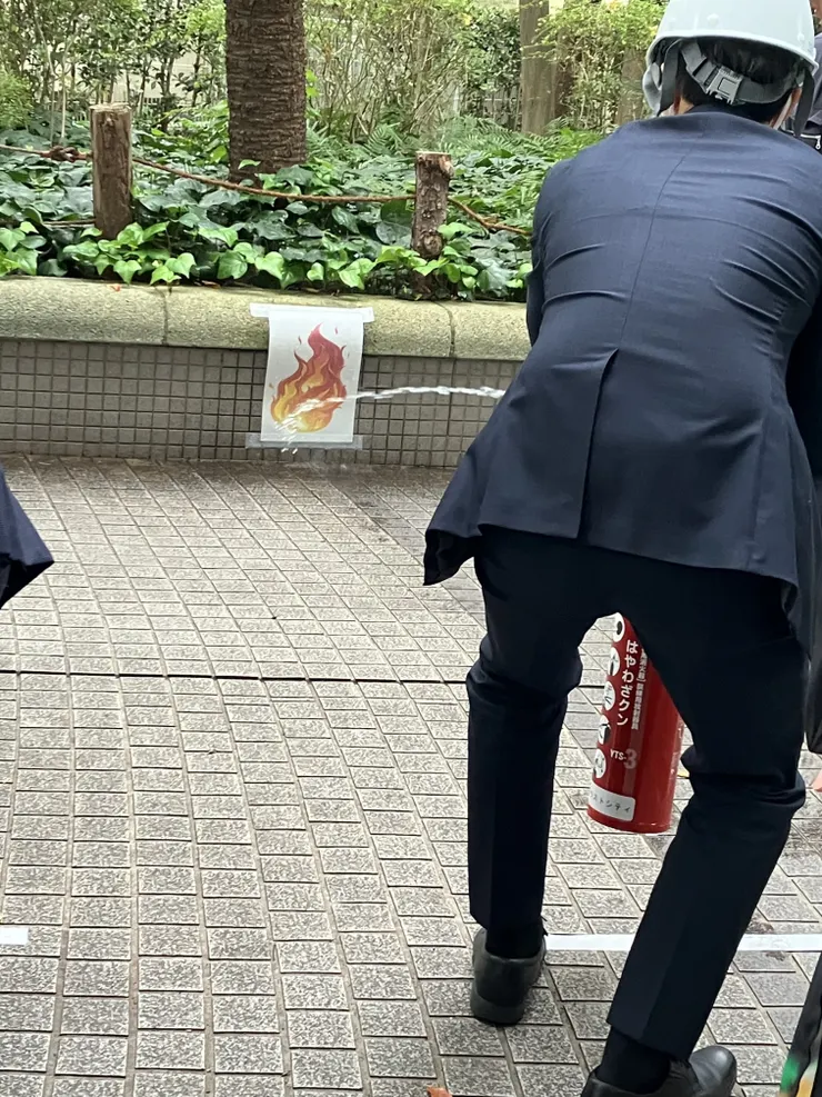 消火器の噴射時間は15秒程度で、予想よりも短かったです!火は根本をやっつけないといけないようで、燃えている対象物や対象物の根本をめがけると早く消火できるようです👷🏻♀️