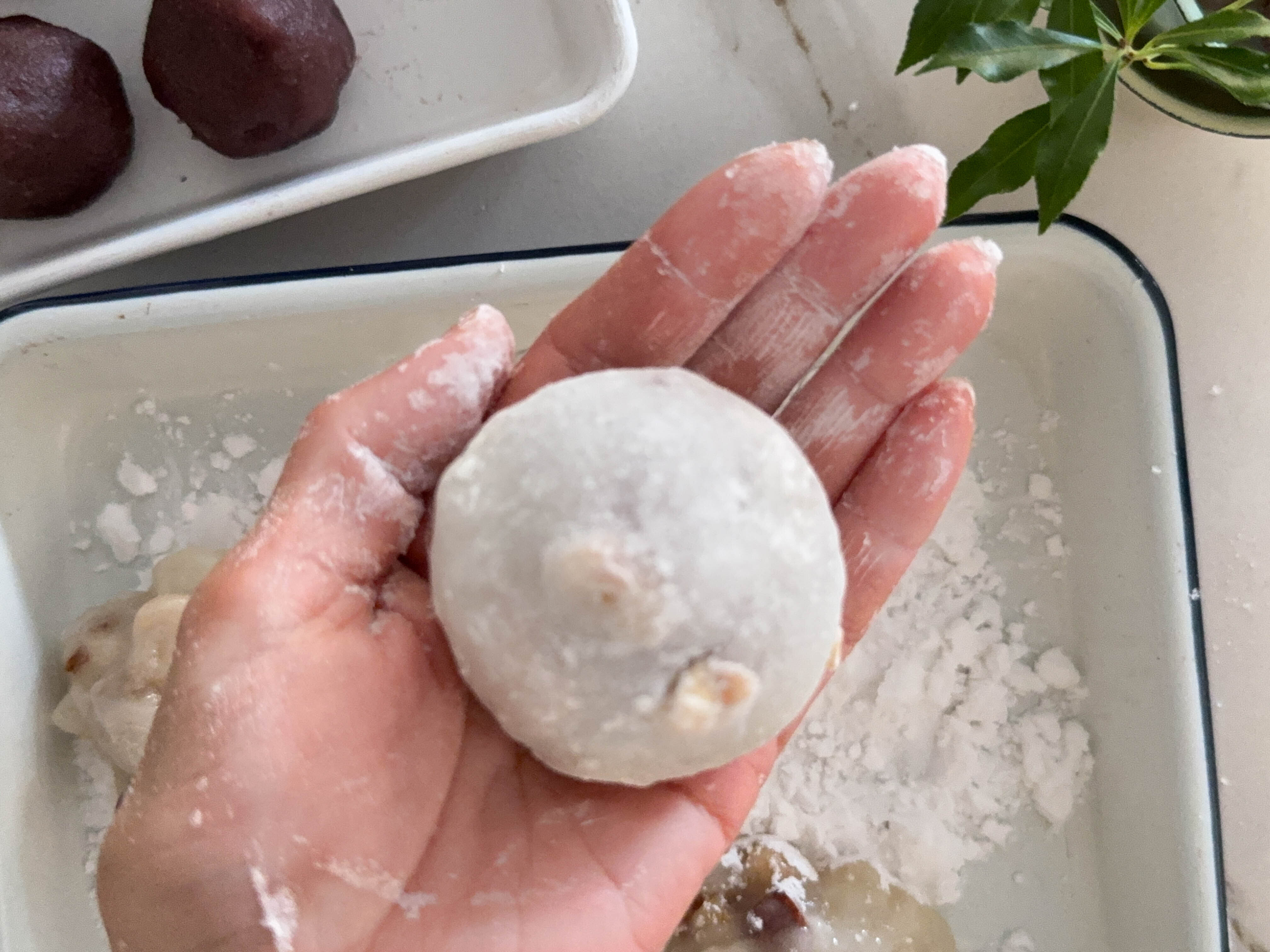 1.こしあんを5等分にして丸める。
