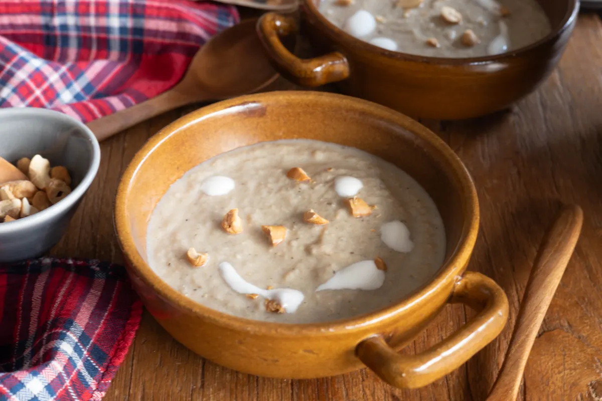今月のレシピは、きのことカシューナッツを使ったポタージュです。