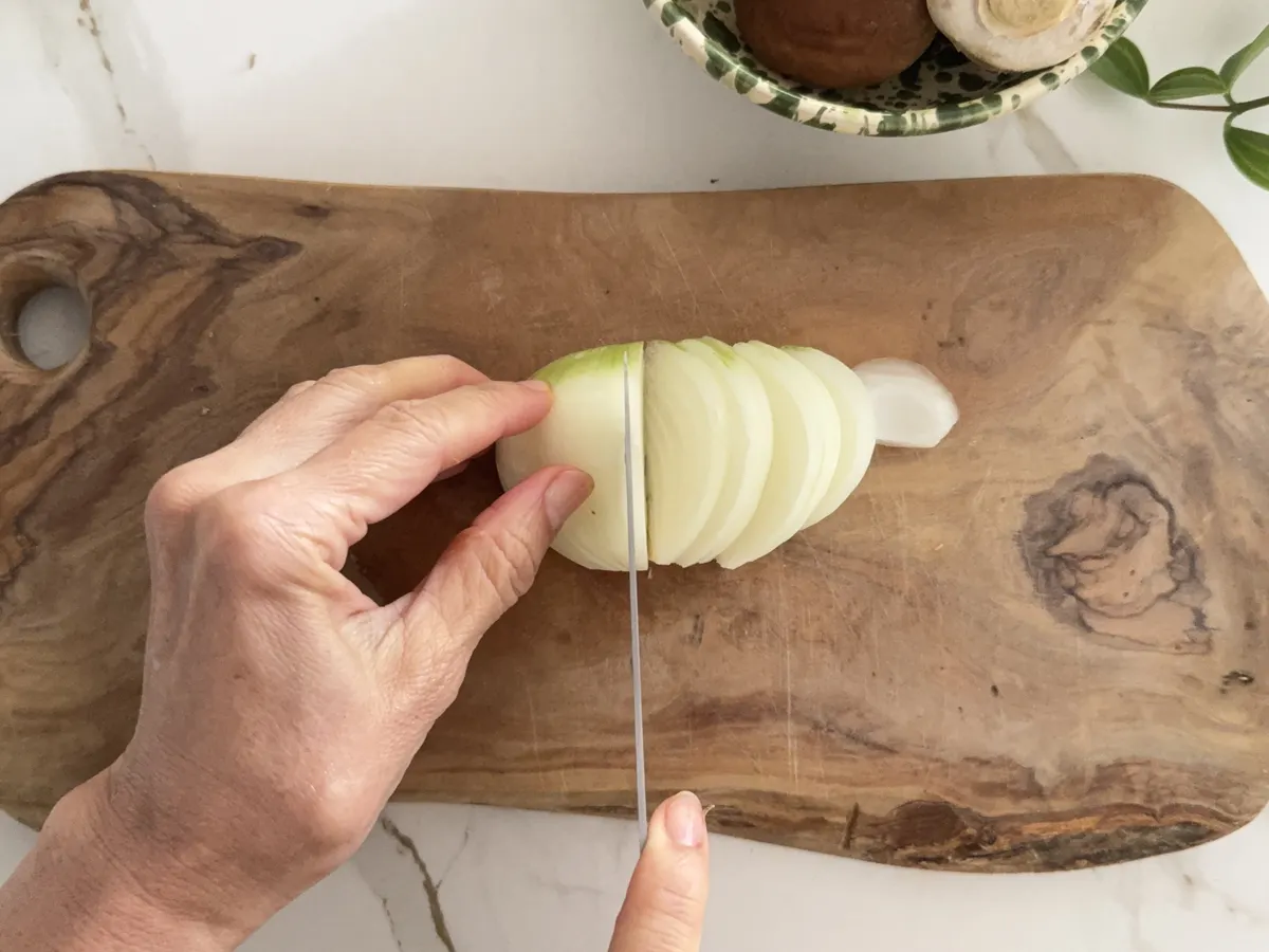 ⑤玉ねぎがしんなりしたらきのこを加えて炒め合わせる。