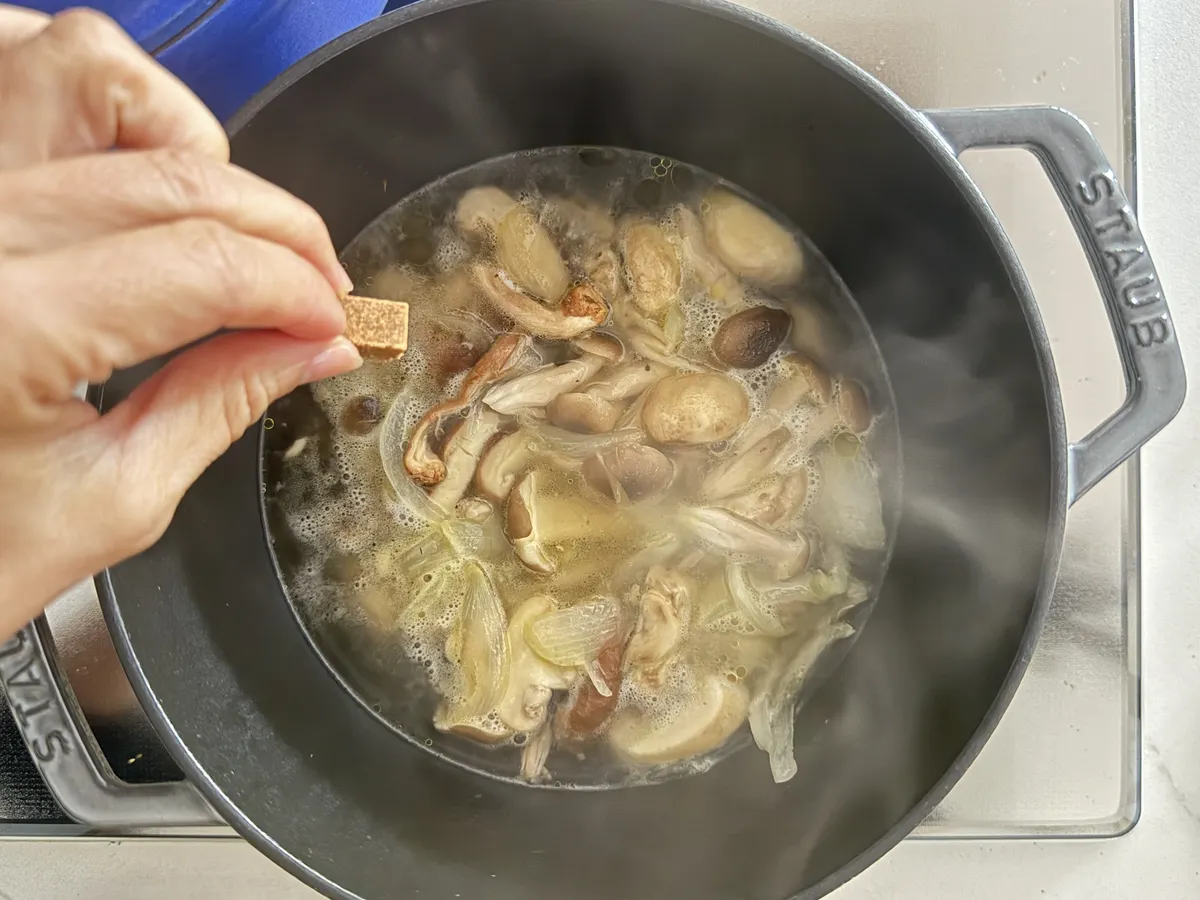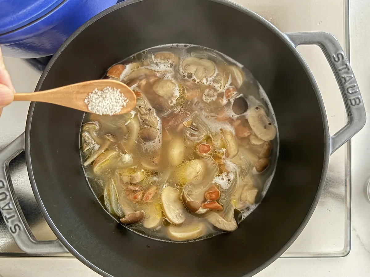 *きのこは1種類だけでも作れますが、数種類混ぜると味に深みが出ます。