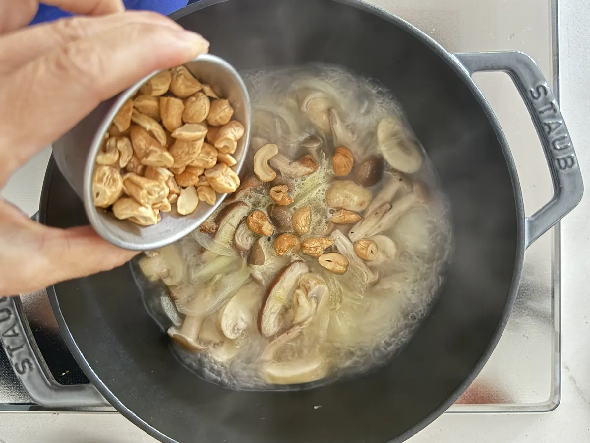 ⑧カシューナッツが柔らかくなったら、塩、こしょうを加える。