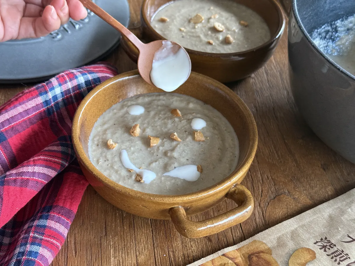 【デルタウンキッチン】冬の体を温める「きのこカシューのポタージュ」