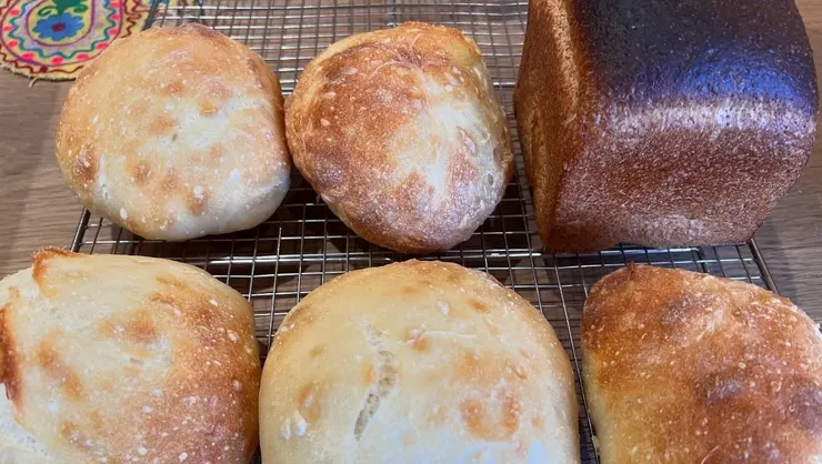 本日はリュスティック、山食、ブラウンブレッド。ブラウンブレッド以外は給水多めなゆるい生地。中でもリュスティックは80%の高加水パン。こういう生地はパンチをしっかり入れながら進めるのが肝。基本は大切ですね。山食にはふすまを配合しました。家族からは好評です。ゆるい生地は扱いが難しいですが、技量が上がる気がします。次回もゆるい生地に挑戦します。