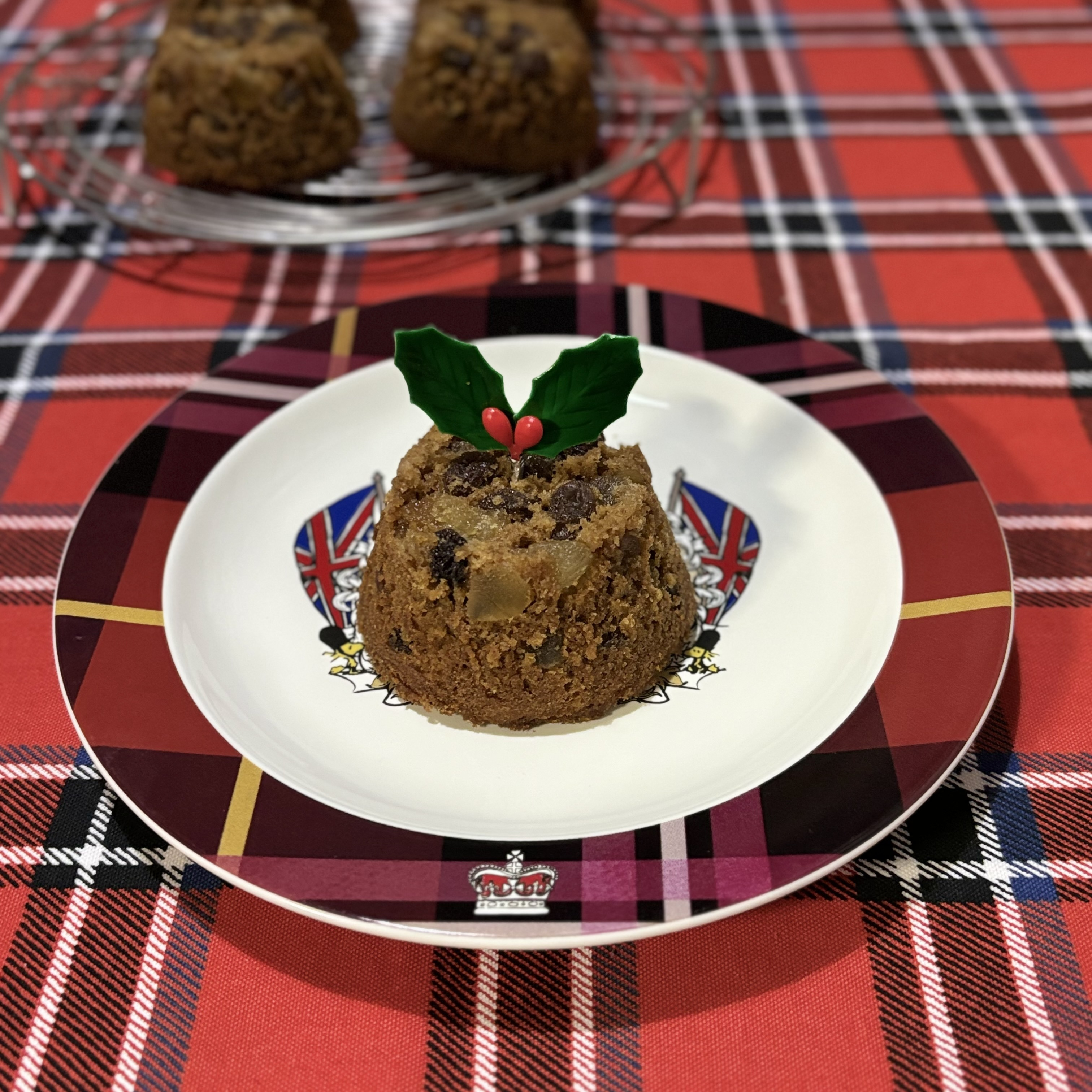 ドライフルーツとクルミをたっぷり入れて、クリスマスプディング風の蒸しケーキを作りました!熱々にバニラアイスを添えて食べました😋