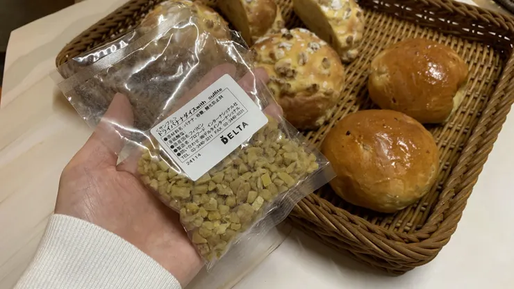 デルタのバナナダイスを使ったパンを作っていただきました🍌