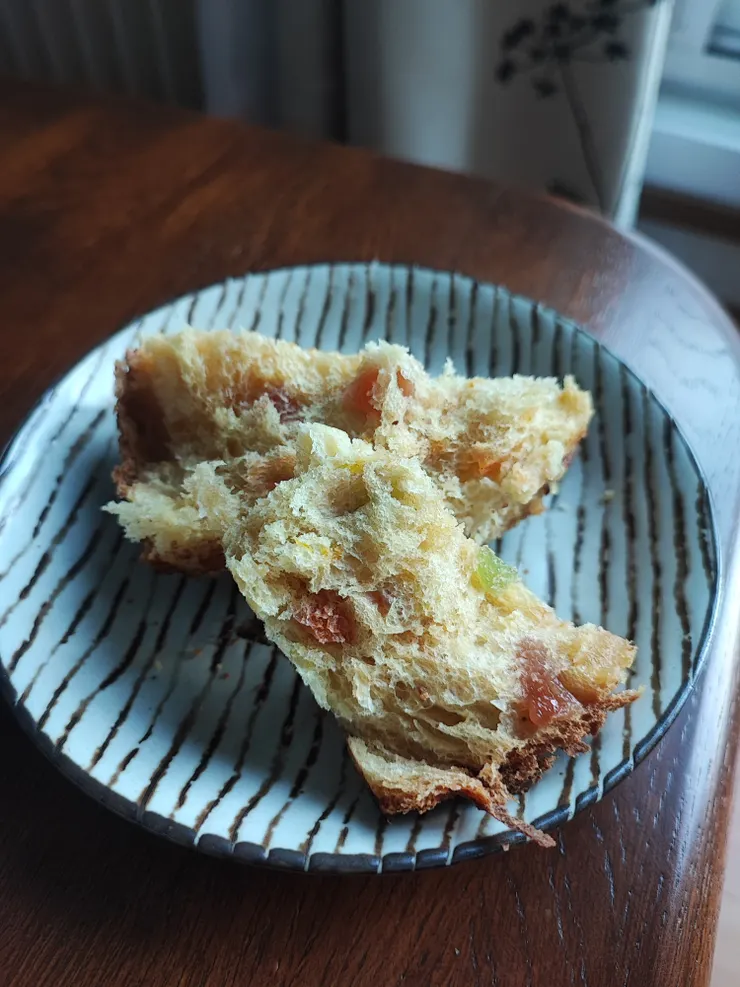私は今日トーストしてお昼に食べました。パネトーネはトーストして食べるのが好きです🍽️