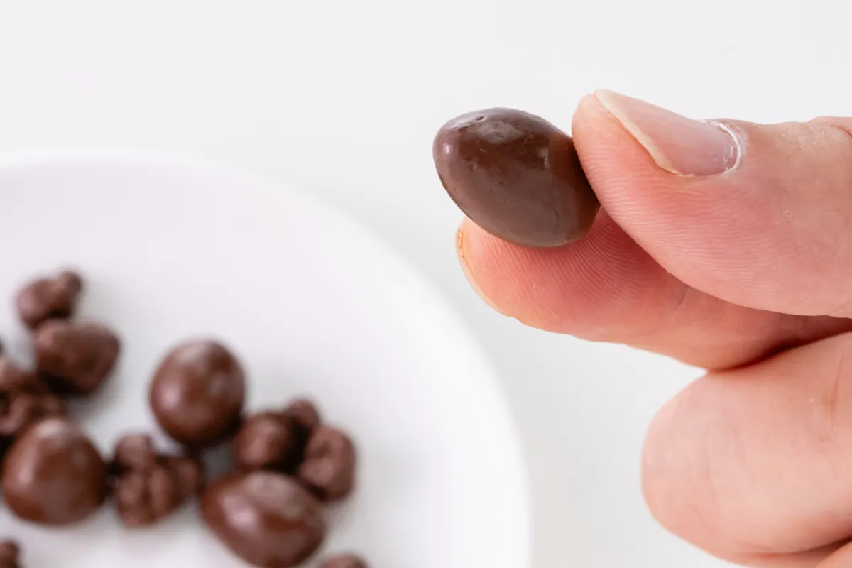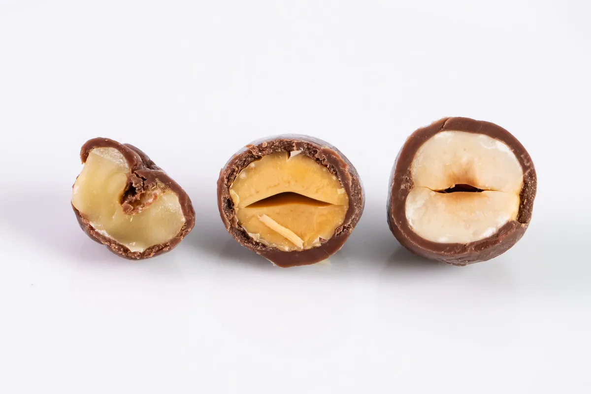 一般的にチョコレート比率が高い商品が多い中、“ナッツのおいしさもしっかり味わっていただきたい” という想いから、ナッツとチョコレートを1:1で設計しました。