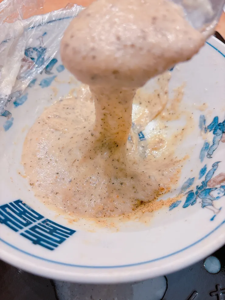 吹きこぼれるから大きめの器で…って、吹きこぼれたし、あまりにもベタベタドロドロなので、別の器に移すのも、もう萎え萎え🤣