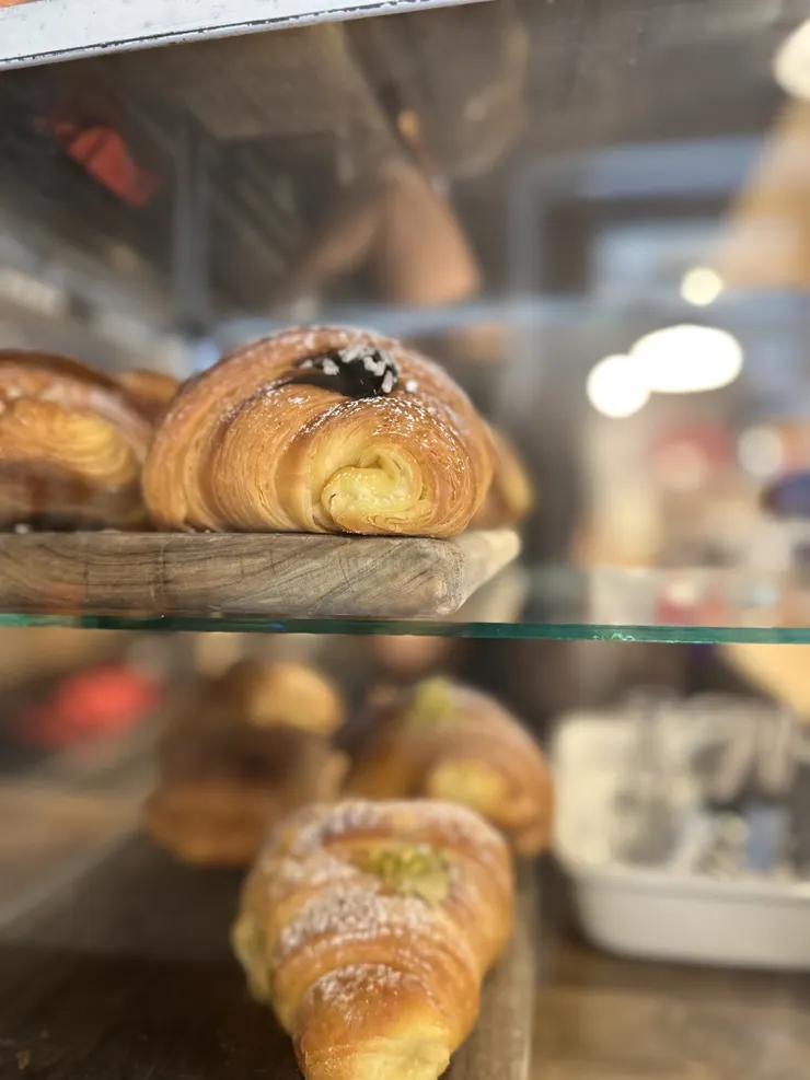 イタリアの朝食はカプチーノとクロワッサンにあま〜いカスタードクリームかピスタチオクリームを