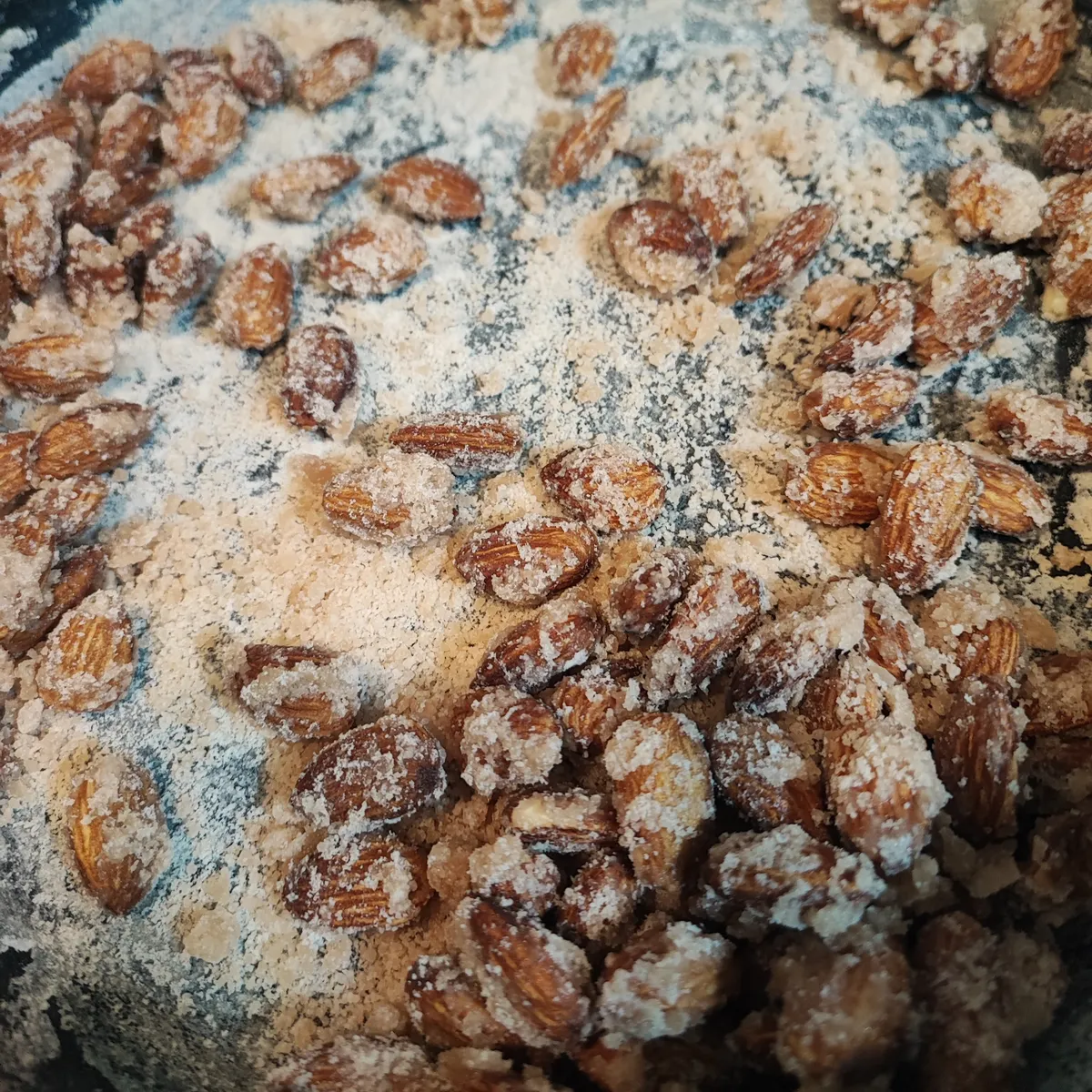時間をかけてじっくり炒るので、アーモンドがカリッカリで、それがカリカリの飴のコーティングとよく合い一度食べ始めると止まらなくなります✨