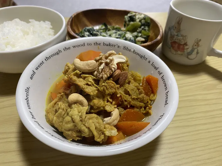 話題は変わりますが、昨日冷蔵庫のにんじんと冷凍庫の下処理済み玉ねぎ、豚肉でスープカレーを作りました。スープカレーは私が一人暮らしを始めてから定期的に作っている「定番」の料理です。目分量で調味料を入れるので毎回微妙に味が違いますが、スープカレーが冷蔵庫にある日は家に帰るのが楽しみです。