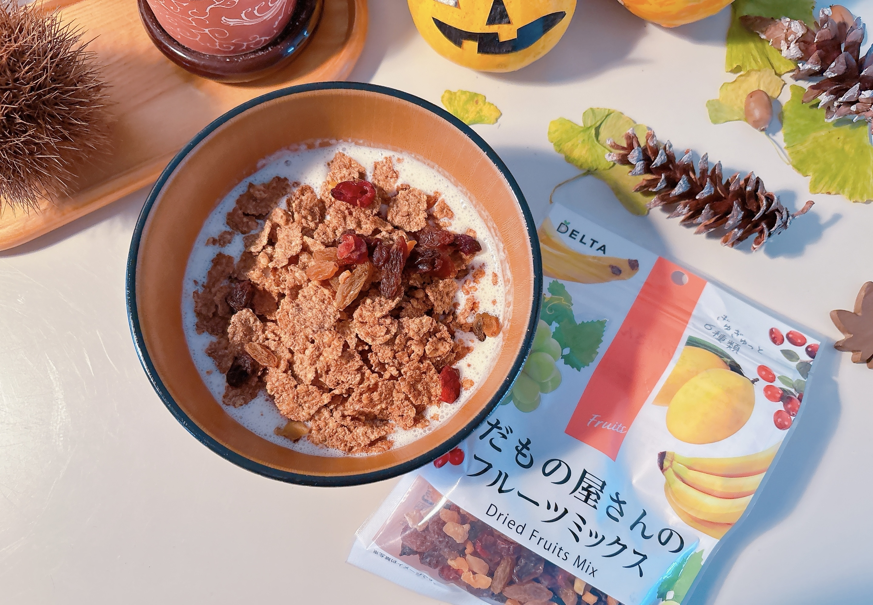シリアルにくだもの屋さんのフルーツミックスちょい足しでとっても美味しそうですね!