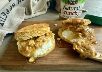お土産でいただいたパンケーキミックスを使ってスコーンを焼きました^_^腹割れも出来て上々の出来に😊マスカルポーネチーズとデルタさんのマザーアースピーナッツバターを挟んで蜂蜜をかけて頂きました。美味しい😋このピーナッツペーストはほんのり甘味が感じられて本当に美味✨ついついスプーンで食べちゃいます❤️今