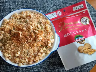 生クルミもパン粉と一緒に炒ったらどうかなとやってみたあとにまた食べる時トースターで少し焦がしてみました😊ボリューム満点のスコップコロッケです🤭