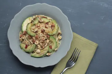 ナッツのオイル漬けとアボカド🥑で簡単パスタ✨切るもの少なくてパパッと出来るので好きです。オイル漬けには粉チーズも入っているからコクもある✨ナッツの歯ごたえとまろやかなアボカドがいい相性。栄養バランスもよい^_^お昼を簡単に済ませたい時にもオススメです💖