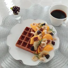 朝活プ活 婆様に冬のヨーグルトはさぶぃ活。 デルタさんのナッツ&ドライフルーツオンパレードのヨーグルトボウルモーニングです♪ ノンオイル自家製麹甘酒グラノーラにはナッツたっぷり。薄切りのバナチとプルーン、クランベリーをトッピングしてココナッツシュレッドをぱらりと。(スノースタイルのつもり?❄️)ちょっとばっかりクリスマスっぽ