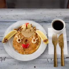 お顔パンケーキを作る日々 パンケーキにナッツとバナナを乗せ続けて10年は経っている事に気がつきました。10年前には本当に毎朝パンケーキ焼いてたんです。今は週半分くらい。ついには顔パンケーキ作りにハマっている現在。今、夢を一つ抱きました。このまま作り続けて89才になったらキリよくパンケーキカフェやりたいです。パン(8)ケークス
