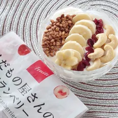 今日は朝食のギリシャヨーグルトに、くだもの屋さんのグランベリーとプルーンをたっぷりトッピングして食べました。グランベリーのちょっと硬い食感と、プルーンの柔らかな果肉感がとてもヨーグルトに合って美味しかったです。