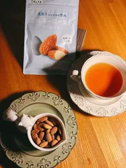 ルイボスティーの紅茶と合わせてみた ノンカフェインの蜂蜜入りルイボスティー(粉末)があったので、飲むお供に、ミルキーローストアーモンドを選んでみました、 はう、コーヒーも合いますが、ルイボスティーともほっこりタイム。優雅に飲んだ後、カップに入れたので、ついついアーモンドに手が伸びる伸びる笑 このミルキー