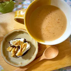 くるみとデーツ🐿️ 先日いただいた有機生くるみ、クリームチーズ 、デーツを組み合わせました☺️くるみがフレッシュで美味しかったですシナモン、カルモダン、ジンジャーを入れたカフェオレととっても相性がよかったです☘️