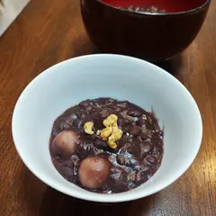 くるみ蕎麦団子のおしるこ 地元産小豆と地元産蕎麦粉がカリフォルニアの空気を纏ったくるみと出会いました🤣 もうこちらはすっかり寒くなり、熱々のおしるこが食べたくなる気候になりました。 蕎麦粉を混ぜた白玉粉はトッポッキのようなしっかりとしたもちもち食感になります。蕎麦団子の中心には砕いたくるみが入って食感をプ