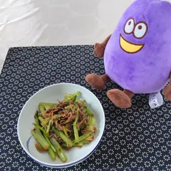 カブの茎を米油で炒めちりめんを加え更に炒め、ぬるま湯で溶いたプルーン味噌、みりん、減塩醤油などを絡め焼きしました。美味しく出来ました😋