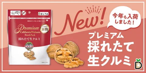 【新商品】今が旬!「採れたて生クルミ」が今年も登場! 今年もこの季節がやってきました!「クレイン社 プレミアム採れたて生クルミ」数量限定で発売✨毎年ご好評いただいている “旬のクルミ” が、今年もついに登場です!カリフォルニアのクレイン社で収穫されたばかりの新物クルミ。袋を開けた瞬間にふわっと広がるフレッシュな香り、そして新鮮な味わいは、まるで農園で殻