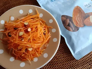 ミルキーローストアーモンドをキャロットラペに刻んで入れて作ってみました!食感も甘みもプラスされて美味しくできましたよ🥕
