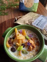 【デルタウンキッチン】ナッツ・フルーツの朝食ミルクがゆ