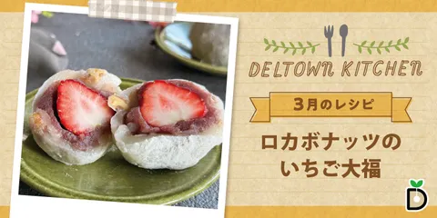 デルタウン住人のみなさん、こんにちは!3月は旬のいちごを使った「ロカボナッツいちご大福」のレシピをご紹介します♪香ばしいロカボナッツを生地に忍ばせた、カリッとした食感がアクセント!いちごと餡子、そしてもちもちの皮が一体となった絶妙なハーモニーが楽しめます✨材料も少なく、電子レンジで簡単に作れるので、