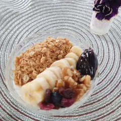 朝ごはんのヨーグルトボウルに、生クルミとプルーンを入れました😋