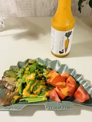 いただいた「金時にんじんとアーモンドのドレッシング」を使ってみました!金時にんじんのうまみがしっかり出ている感じです原料に使われているリンゴ酢がほどよい酸味を、細かく砕かれたアーモンドが食感をもたらしてくれます♪このドレッシングをかければ、どんなサラダも味わい豊かになりますね☆