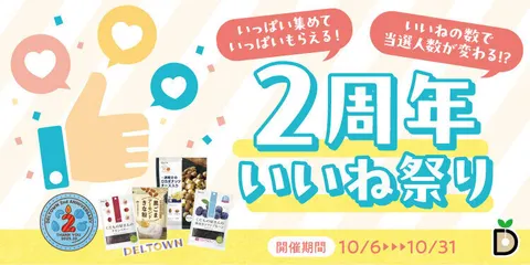 \ 👍2周年いいね祭り👍🎉 /いいねをすればするほど当選者が増える!? 【応募方法】キャンペーン期間中に いいね をするだけ! 皆さまのいいねをお待ちしております👍✨今月でデルタウンが2周年✨デルタウンは運営側だけでなく、住人のみなさまの沢山の投稿やいいねによって支えられてきまし