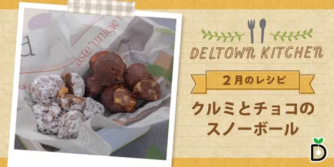 デルタウン住人のみなさん、こんにちは!2月といえば、ちょっと甘いものが食べたくなる季節ですね☺️今回は、香ばしいクルミとチョコレートのコクが楽しめる「クルミとチョコのスノーボール」をご紹介します。材料を混ぜて、丸めて、焼くだけ!型いらずで手軽に作れちゃいます♪ほろほろとほどける食感に、クルミの歯ごた